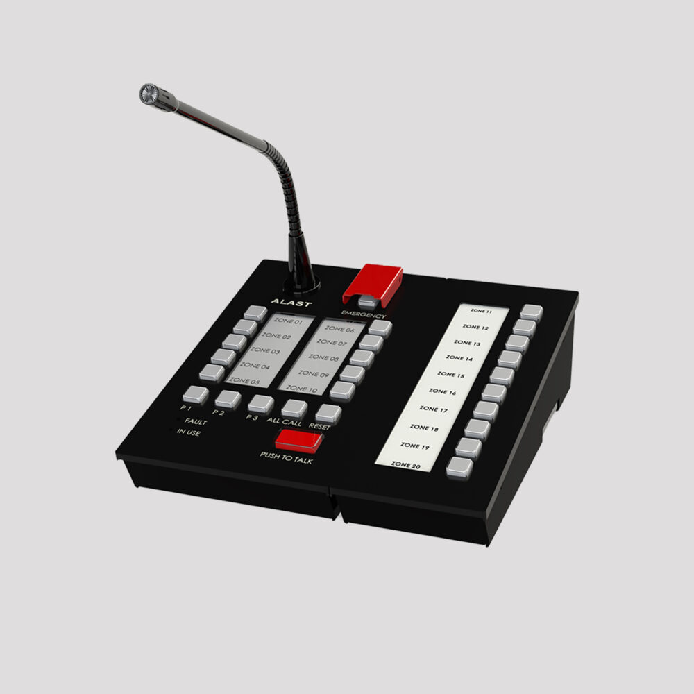 این دستگاه امکان فراخوانی تا ۴۰ زون مجزا را فراهم میکند (۱۰ کلید مستقیم و ۳ کلید گروهی) و قابلیت اتصال تا ۸ میکروفون را دارد.